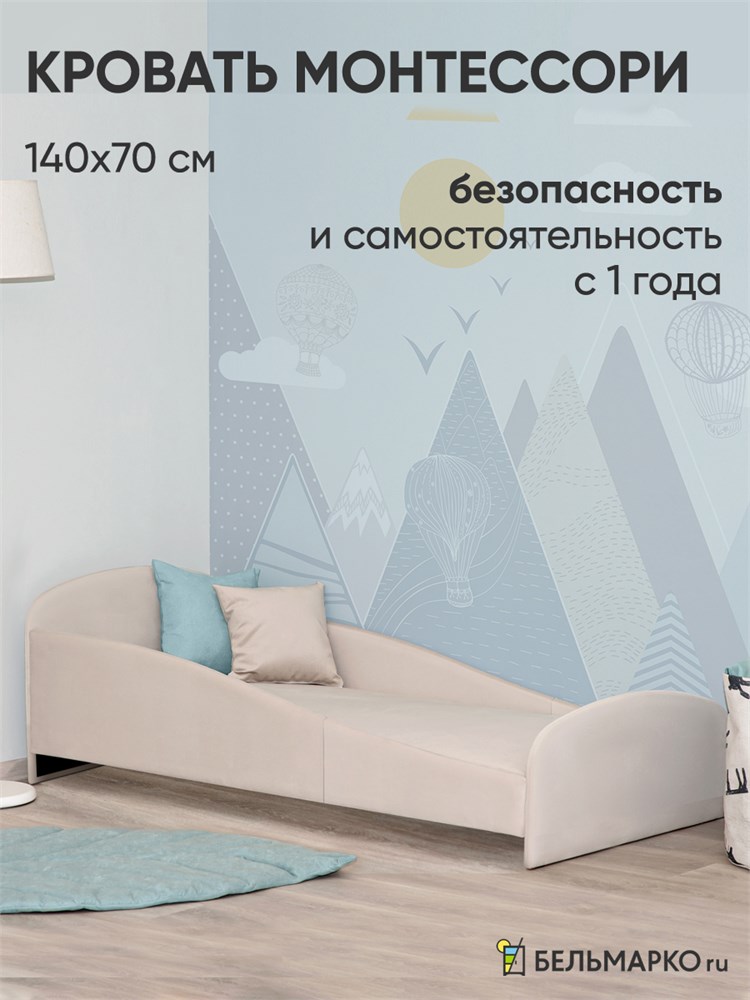 Детская мягкая кровать Letmo Twin Монтессори 140х70 ванильный (велюр)